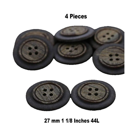 4 Brown Faux Wood Plastic Buttons Four-Hole, 27mm (1 1/8") Size