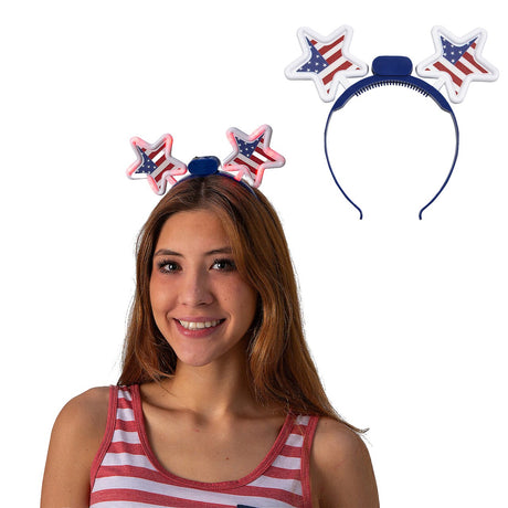 9" circ. Patriotic Red, White & Blue LED Light-Up Star Headbands 6 Pieces