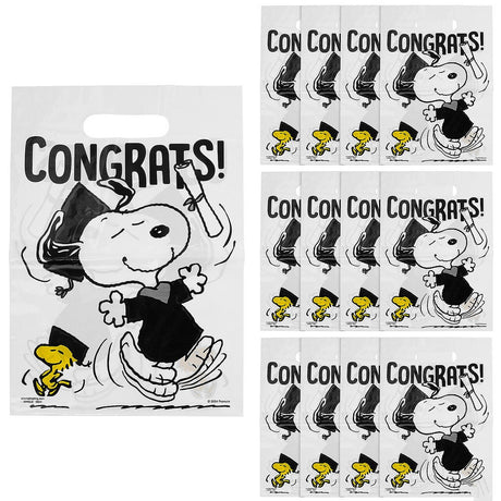 9 1/4" Peanuts® Snoopy Graduate Plastic Goody Bags - 12 Pc.