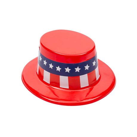 9 1/2" x 11 1/2" Patriotic Red, White & Blue Plastic Top Hats 12 Pieces