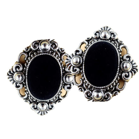 1.75" x 1.5" Silver Black Velvet Gothic Cameo Pendant Small