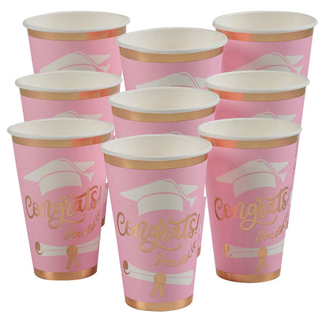 Pink Congrats Graduation Disposable Paper Cups – 12 Count (16 oz, 5.25")