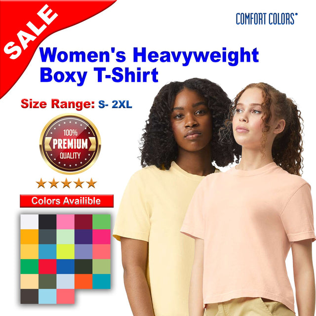 Upgrade your casual wardrobe with the Comfort Colors® Women's Heavyweight Boxy Crew Neck Short Sleeve T-Shirt. Crafted from 100% ring-spun cotton, this tee features a substantial yet soft fabric with a lived-in feel thanks to its garment-dyed finish. Designed specifically for women, the boxy silhouette offers a relaxed, flattering fit with slightly dropped shoulders for an effortlessly modern look. Perfect for pairing with jeans, shorts, or leggings, this heavyweight tee combines structure and softness for go-to comfort and style.
