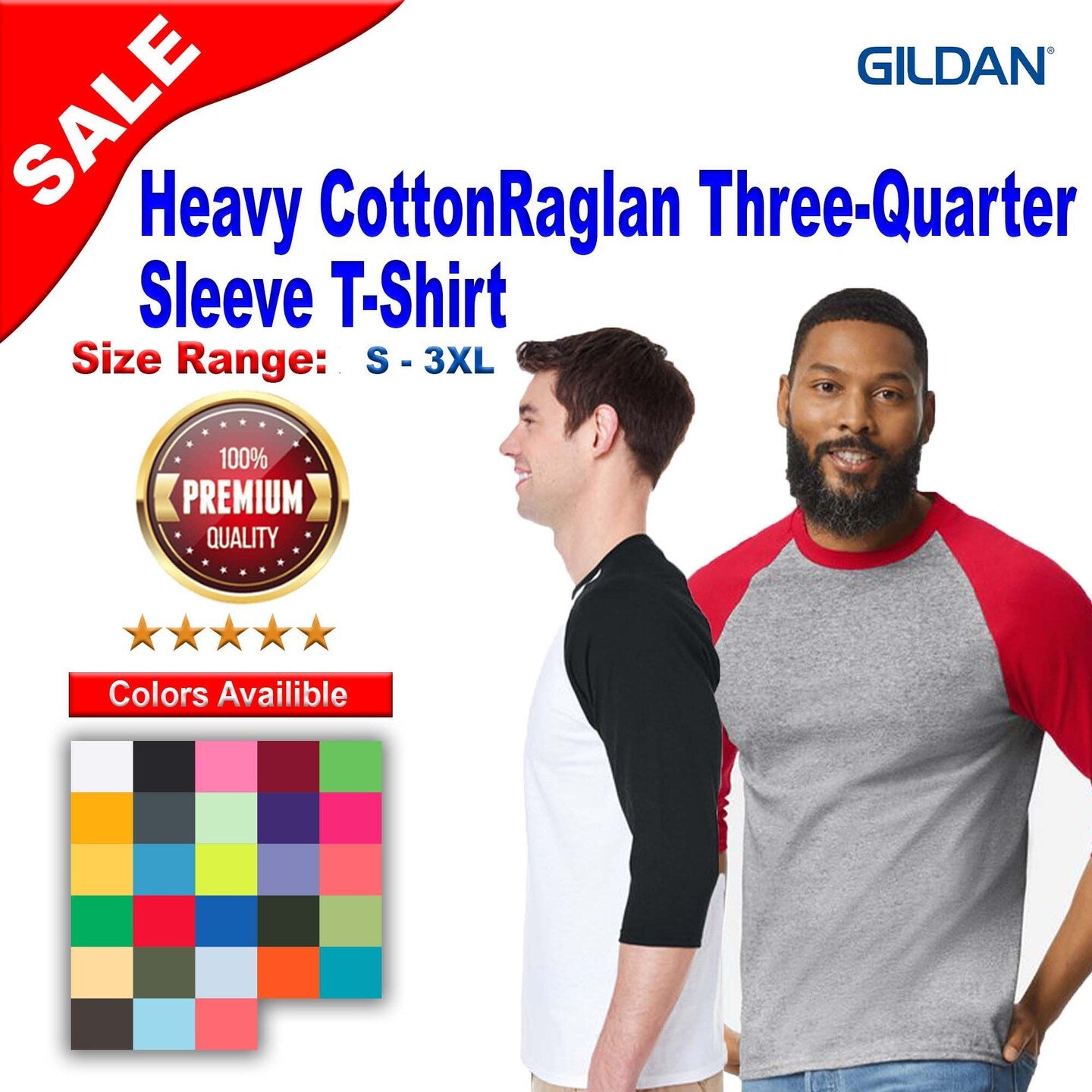 Step up your casual game with the Gildan Heavy Cotton Raglan Three-Quarter Sleeve T-Shirt. Perfect for any laid-back outing or casual activity, this tee combines classic style with modern comfort and sustainable practices.