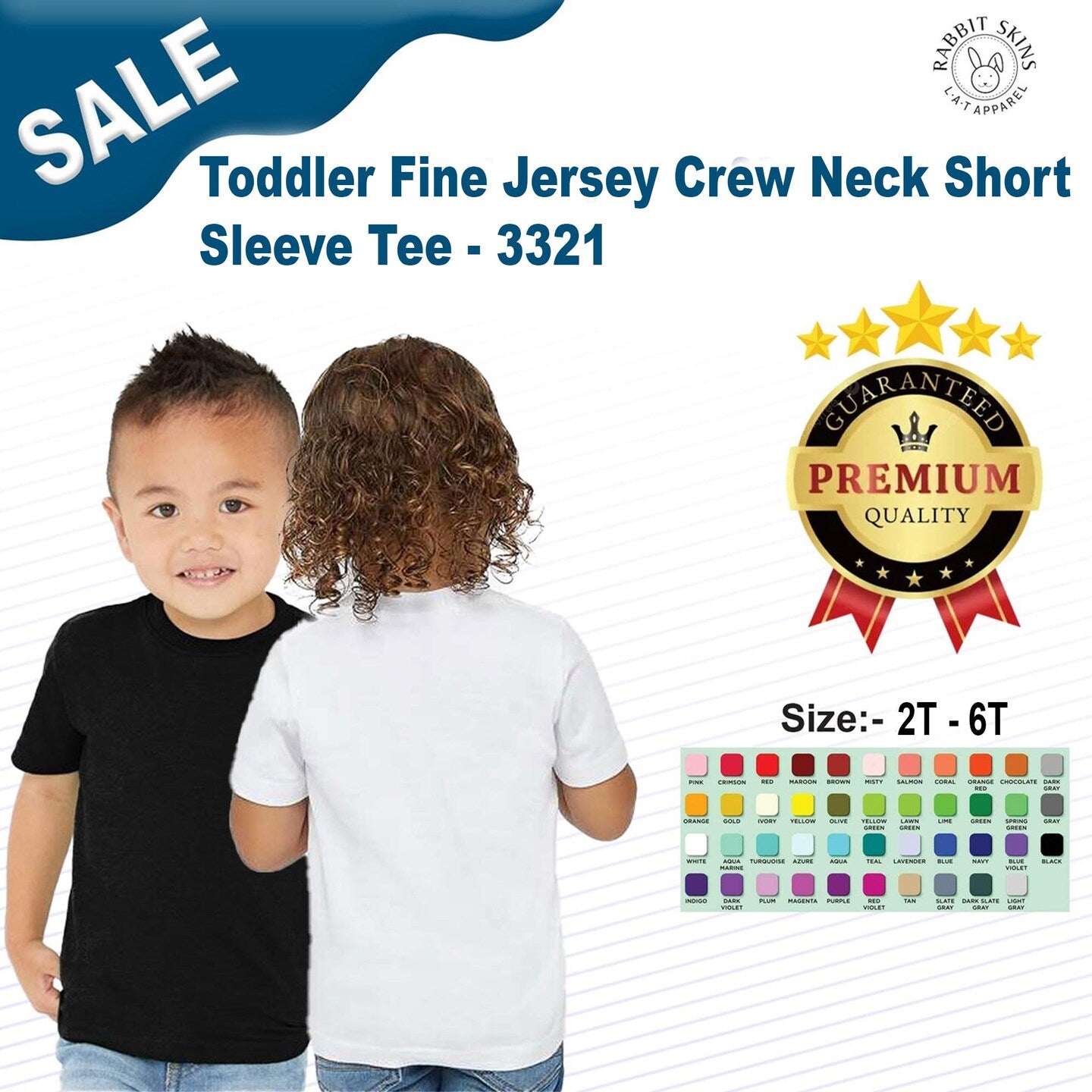 RADYAN Toddler Fine Jersey Crew Neck Short Sleeve Tee - 3321