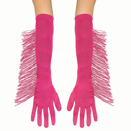 Stylish Adults Long Polyester Gloves with Pink Fringe for Halloween Costumes and Themed Events