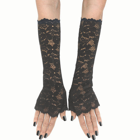 Stylish Black Stretch Lace Long Fingerless Sleevelets for Glam Halloween Costume Accessories