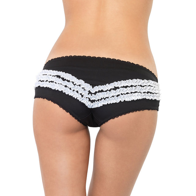 Step into style with our French Briefs, the perfect blend of comfort and flair. Featuring a black contrast ruffle-back panty adorned with white ruffles, these briefs are designed to elevate your costume or themed party outfit.