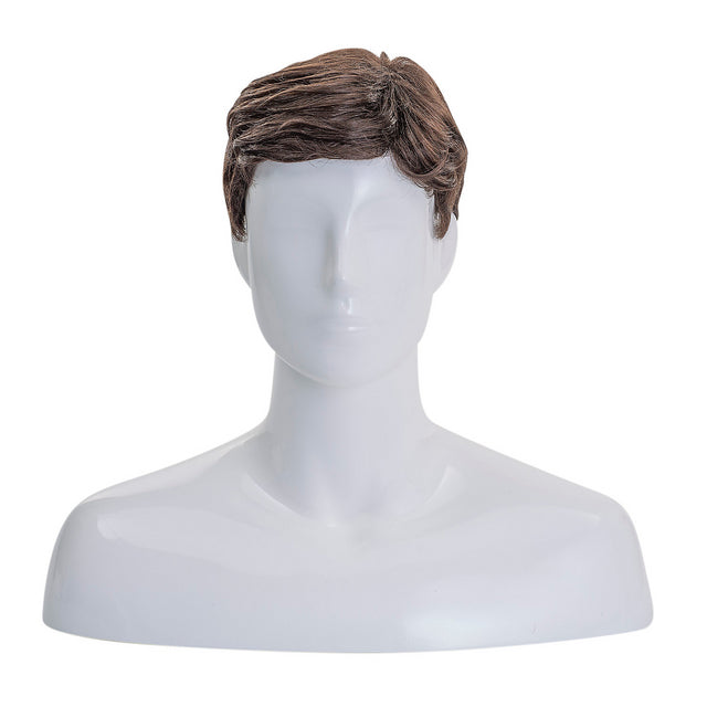 This men's wig features a young politician look with conservative, short, full hair in a side part style. Perfect for transforming into a politician or for themed costume events, this wig adds a touch of authenticity to your outfit.