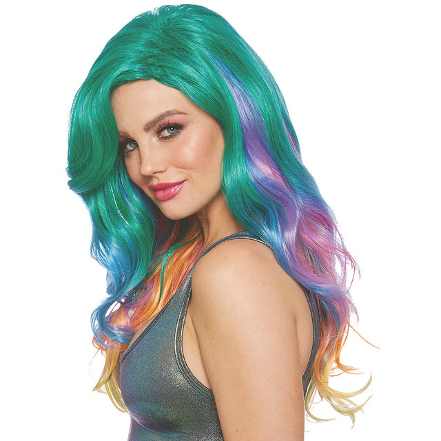Vibrant Jewel Tone Rainbow Wig for Magical Unicorn Fairy Looks Festivals and Cosplay Events