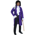 Let the purple reign begin! This regal rocker costume features a long purple jacket, shirt front, and black pants with silver buttons on the leg. Available Size: Standard (Fits waist sizes 34"-38" and chest sizes 42"-46").