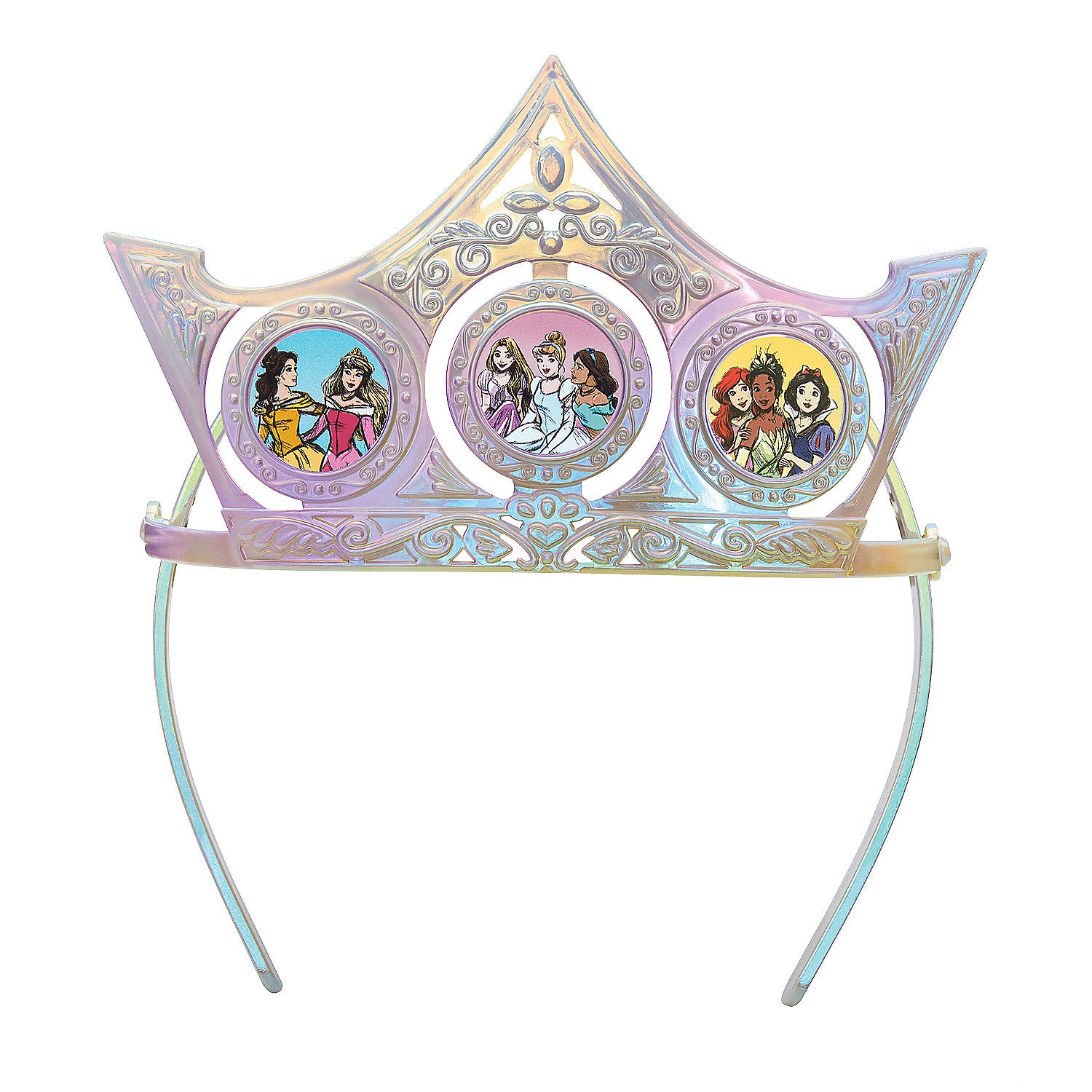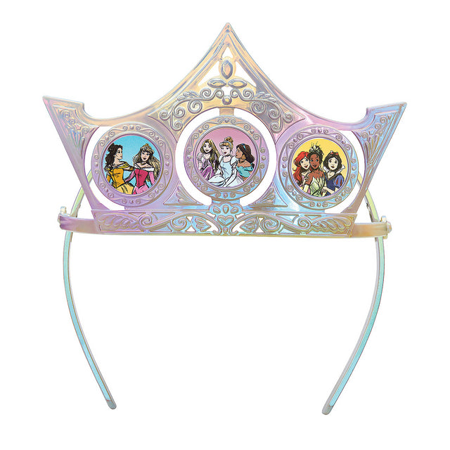 Perfect finishing touch to any Disney Princess costume! Our Disney Princess Platinum Essential Tiara has 3 framed cameos with images of all your favorite Disney Princesses! This multicolored design features lovely scrollwork and comes as a 2-piece tiara that packs flat for less breakage. Just snap the tiara onto the headband and you are all set! One size fits most children, making it ideal for various occasions.