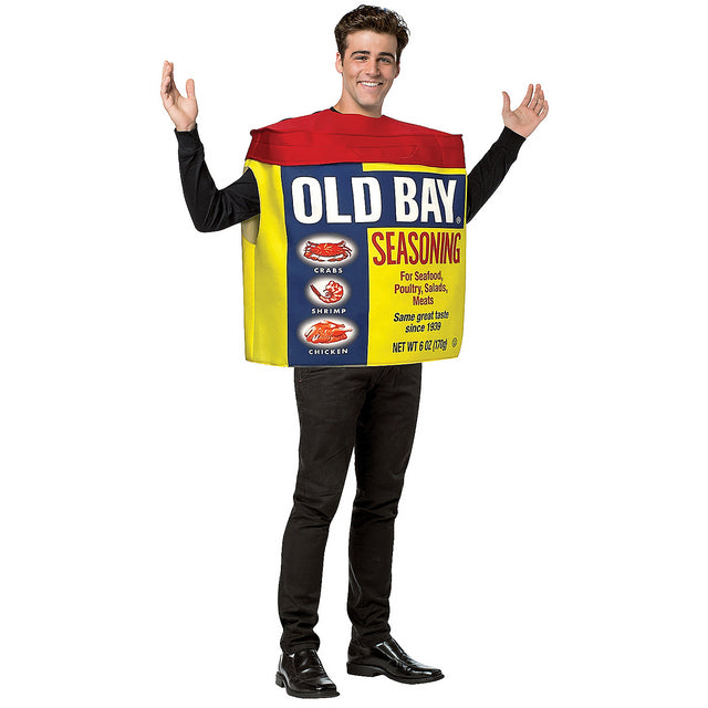 Funny Adult Old Bay Seasoning Can Costume for Halloween Parties and Group Costumes