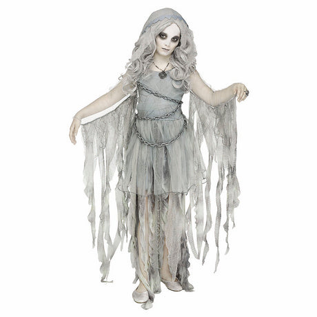 Charming Girls Gray Dress Enchanted Ghost Costume for Halloween Parties and Spooky Dress-Up Events