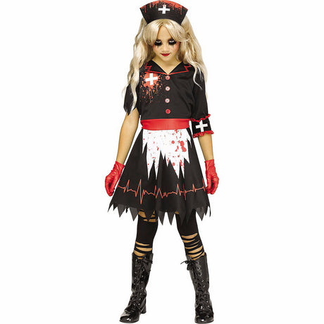 Creepy Girls Black Red and White Nurse Costume for Halloween Parties and Scary Dress Up Events