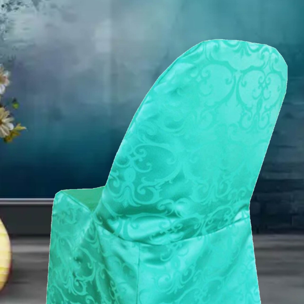 1 Piece Aqua Blue Damask Jacquard Folding Chair Cover for Elegant Seating