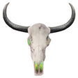 Enhance your Halloween ambiance with our Lightup Longhorn Skull, an eerie yet stylish decoration for your haunted house or party. This hauntingly beautiful skull, made from molded plastic, glows ominously with a green light, perfect for setting the mood during spooky celebrations.