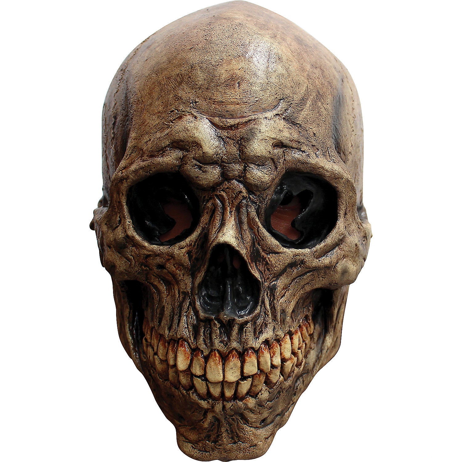Crafted from high-quality latex, this ancient skull mask features a full head construction that is comfortable and lightweight. Mask is skillfully painted to resemble a dark, petrified skull. Fantastic mask to complete your mummy costume!