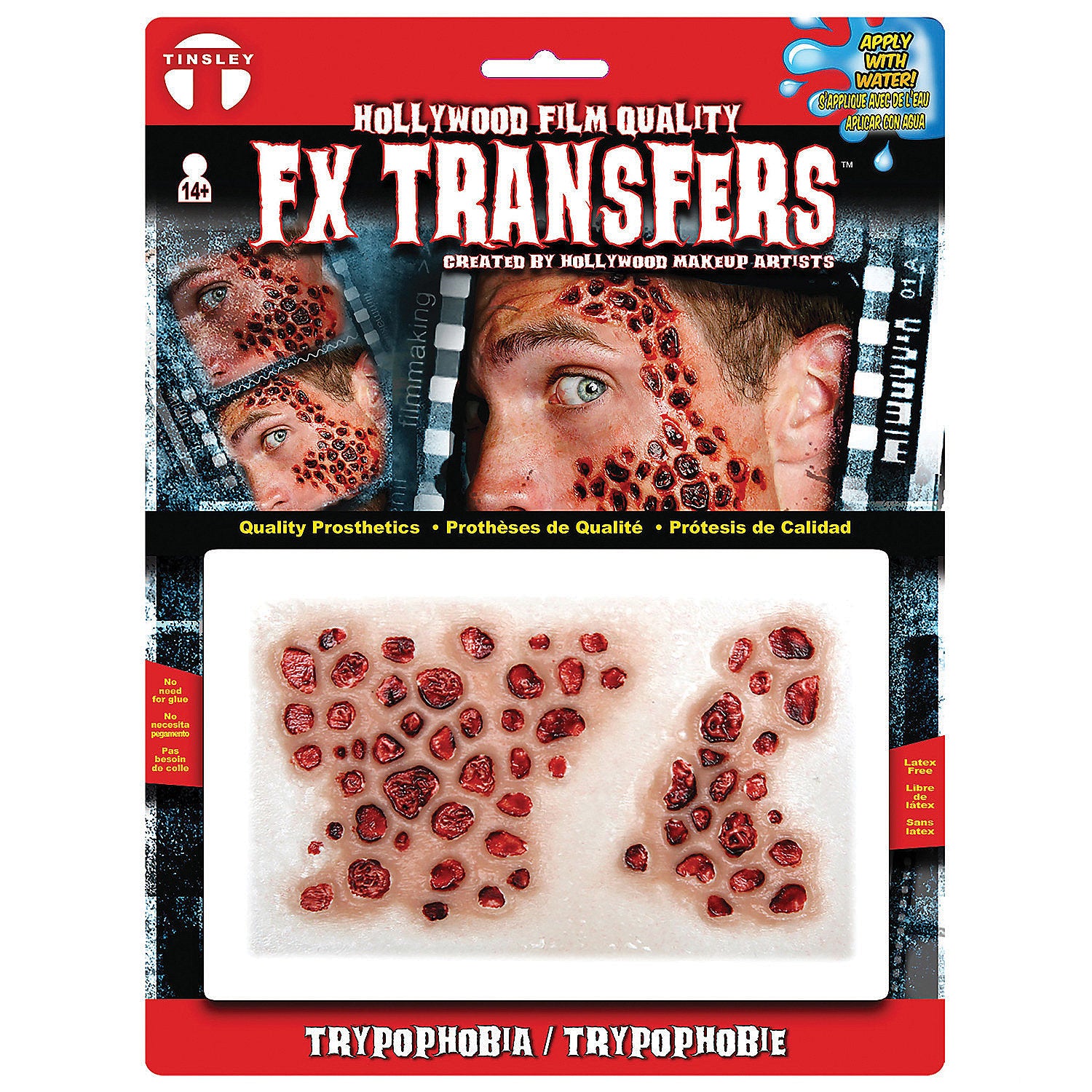 Create a striking and realistic look with our TRYPOPHOBIA LARGE FX TRANSFER. This easy-to-use, self-blending prosthetic works wonderfully for special effects makeup, ensuring you stand out at Halloween parties and themed events. Made with Tinsley's award-winning technology, these latex-free transfers can be applied simply with water—no extra glue required.