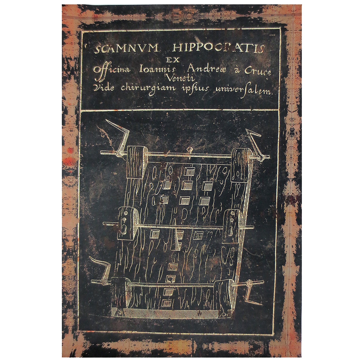 Distressed-look Torture device owner's manual or an office sign? You decide what this eerie looking canvas print on a pressed cardboard frame should be.