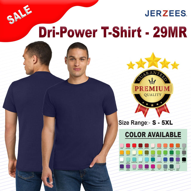 Stay comfortable and dry with the Jerzees Dri Power cotton-polyester T-shirt. Made from a premium cotton-polyester blend, this shirt offers excellent moisture management and a soft feel, ideal for everyday wear and custom printing.