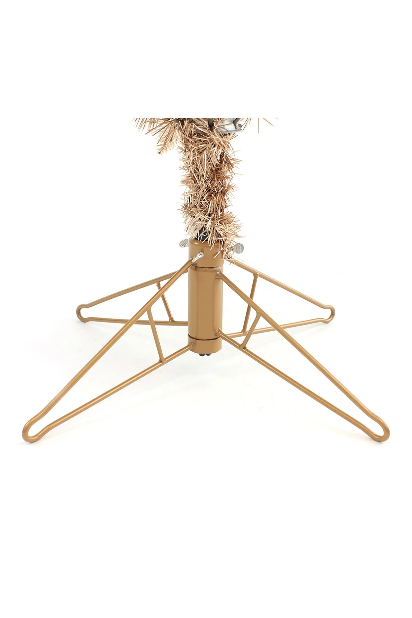 Make a bold statement this holiday season with the Champagne Gold Slim Prelit Christmas Tree. Featuring shimmering metallic tips that reflect light beautifully, this slim tree delivers a dazzling glow that is both festive and elegant. Its slim profile makes it a perfect fit for smaller spaces while still offering plenty of room to display your favorite ornaments. Prelit with warm white LED lights and paired with a sturdy metal stand, this tree is as practical as it is eye-catching.
