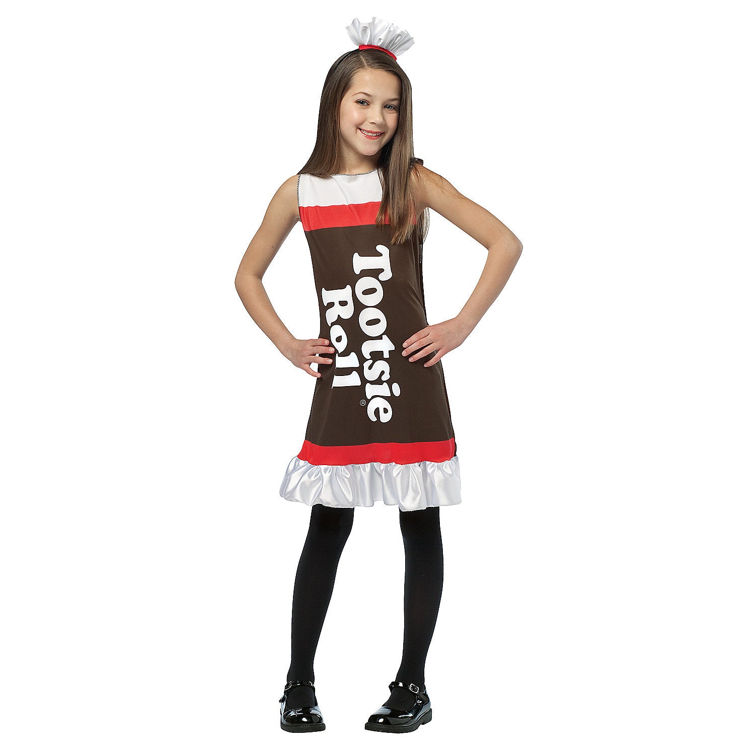 - Show off your sweet side! Includes: Brown and white dress with "Tootsie Roll" logo printed across it and a matching wrapper headband.