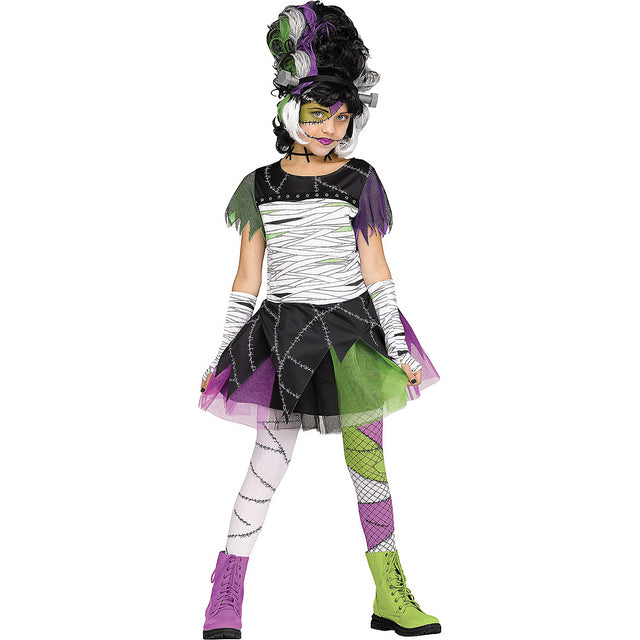 Engage your child's imagination with our captivating Monster Bride Child Costume. This eye-catching outfit includes a stitched look dress, matching sleevelets, a bolt headband, a choker, and footless tights that come together to create a truly fabulous monster look. Perfect for Halloween or any dress-up occasion, your child will stand out at parties and community events.