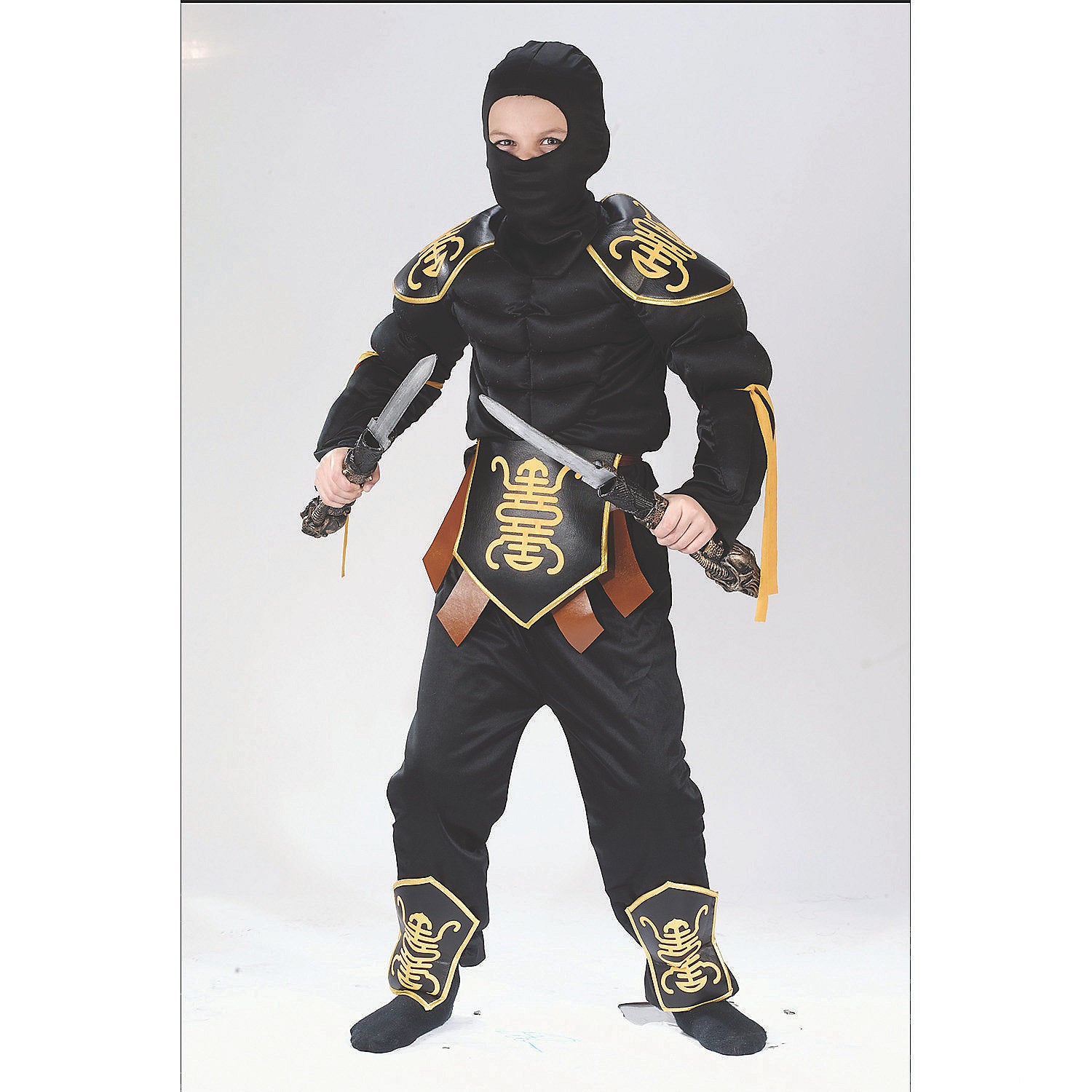 Let your boy dress up this Halloween as a masculine, skill-sure and fully equipped ninja warrior. This costume idea will help him live out his hero fantasy. The Ninja Warrior Muscle costume for boys has a full-body black jumpsuit with authentic flair including faux leather guards for arms and legs, a fashion belt, and Japanese culture inspired frontal and shoulder guards. This costume will be the most authentic Asian warrior costume in the neighborhood. Here's a chance for your boy to become a martial arts hero.