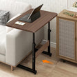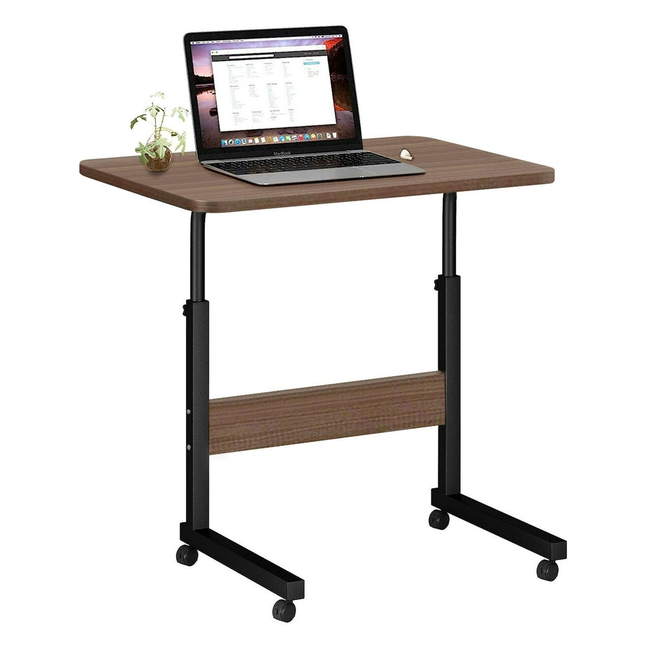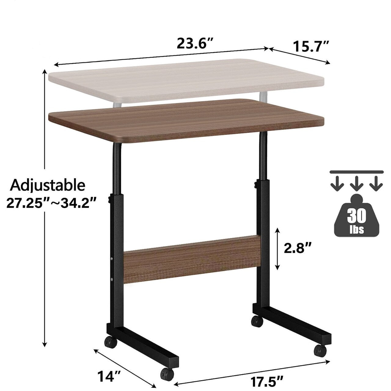 Karl home Mobile Side Table 31.5 Inch Computer Desk with Wheels Height Adjustable Rolling Potable Laptop Cart, C-Shaped Bed Couch End Tables with Edge Stopper for Livingroom Bedroom, Rustic Brown