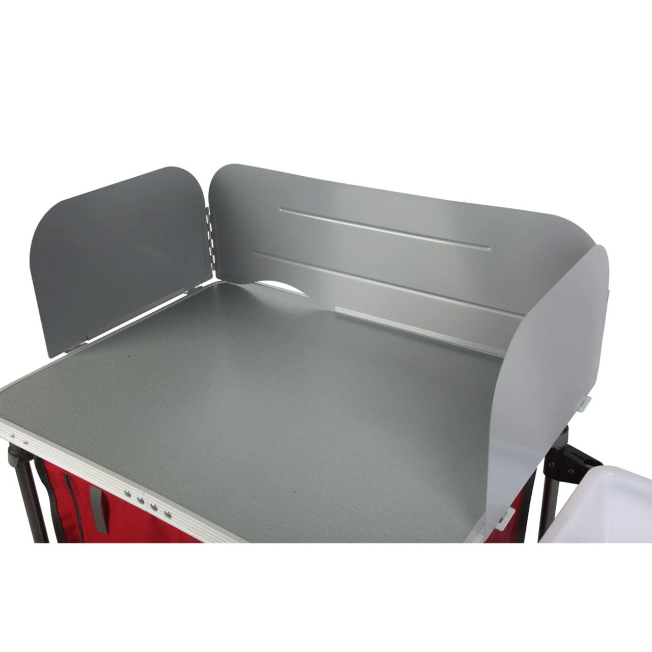 Measuring 31" x 13" x 8.25", this portable table fits conveniently in tents, RVs, or small outdoor spaces. The vibrant silver and red color scheme adds style to functionality, making it both a practical and attractive addition to your camping setup.