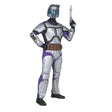 For this year's Halloween costume idea, bring your child's galactic imagination to life with this Star Wars Jango Fett costume for boys! Great for a big Star Wars fan who loves action and wants to get into the Halloween spirit! Perfect for trick-or-treating or joining in on any other Halloween festivities, this costume idea is sure to make his Halloween one of the best he's ever had. Dress up the costume by adding his own toy blasters.