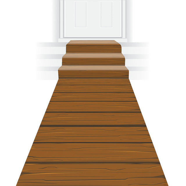 This aisle runner features a wooden plank print in brown that includes a wood grain detail. Enhance party decorations for an entryway or photo booth with this fabric runner that is perfect for use indoors or outdoors. Includes double-sided tape for easy setup.