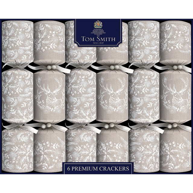 14" Tom Smith Linen Stag Premium Christmas Party Crackers