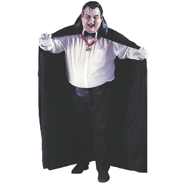 Transform your Halloween look with our stunning Big and Tall Cape. This versatile cape is perfect for creating group or couple costumes, adding a dramatic flair to your attire. Made from comfortable polyester, this satin-like cape features a foam filled collar and a generous 72" length, making it suitable for men up to 300 lbs.