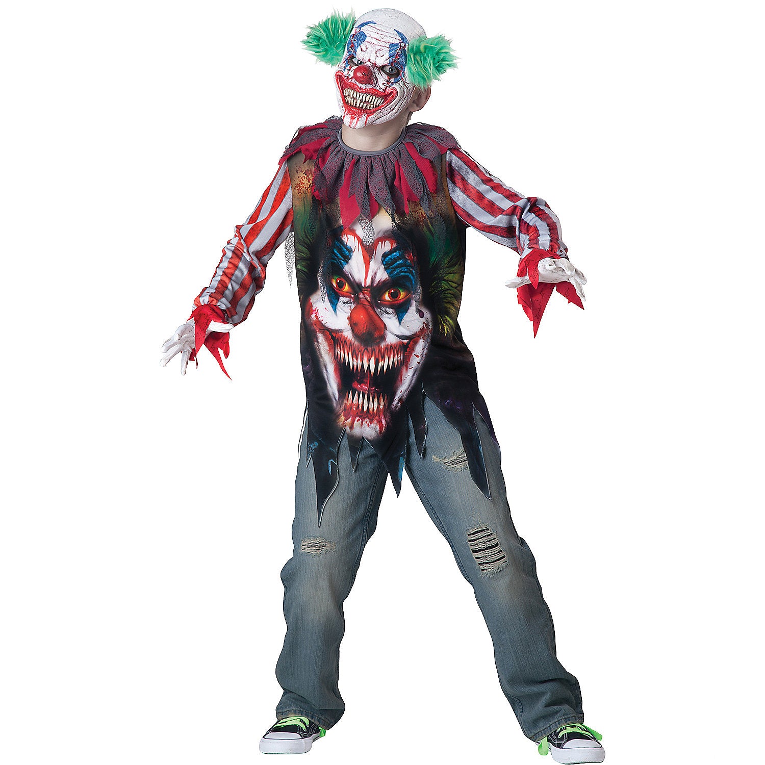 • Complete Look: Includes a vinyl mask for that spooky clown appearance