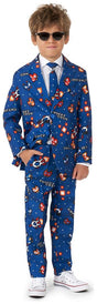Have you ever wondered what it would be like to engulf yourself in an actual video game? If your little guy really wants to show his love for video games, then this suit will definitely take him to the next level. It is an instant high score. The outfit consists of a jacket, pants, and a safe clip-on tie. The pants have an elastic waistband for a comfortable and stylish fit.