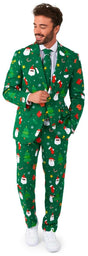 Celebrate the holiday season in style with our OppoSuits Festivity Green Suit. This vibrant suit is designed with festive patterns like Santa, reindeer, Christmas trees, and glittering stars, making it the perfect choice for holiday parties and themed events. Made primarily from 100% polyester, it ensures comfort while letting you stand out at any festive gathering.