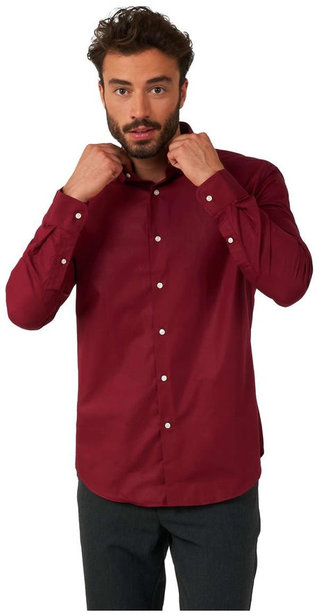Stylish OppoSuits Blazing Burgundy Shirt for Trendy Events Casual Outings and Holiday Parties