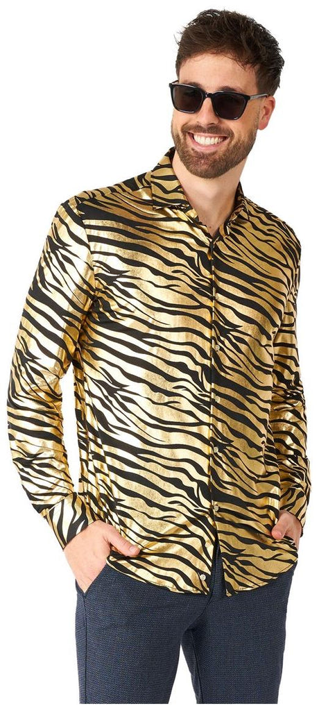 Shiny Gold OppoSuits Tiger Shiner Shirt for Party Events and Dance Floor Dominance