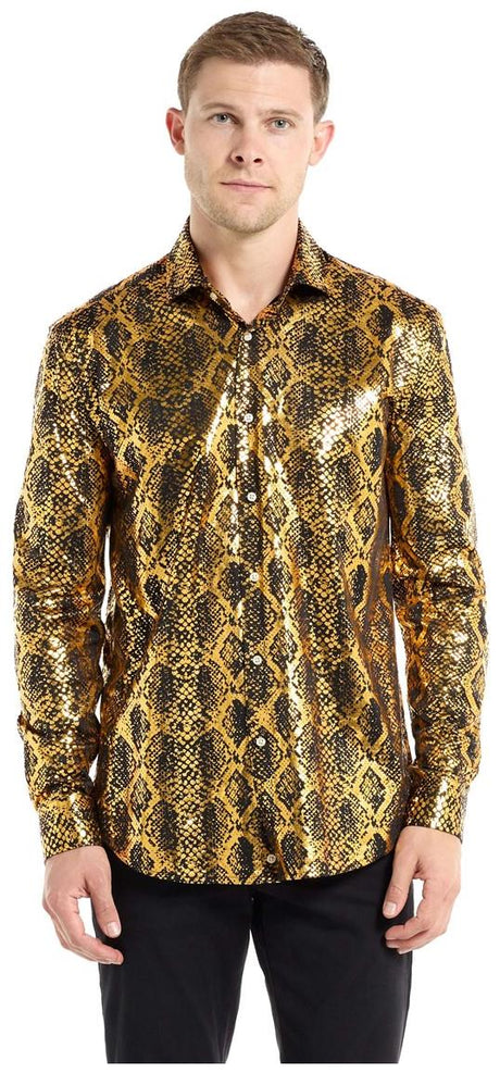 Stylish OppoSuits Shiny Snake Shirt for Holidays Parties and Dancing Events