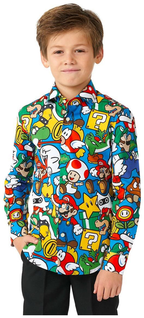 Colorful Super Mario Long Sleeve Shirt for Boys Ideal for Costumes Parties and Gaming Adventures