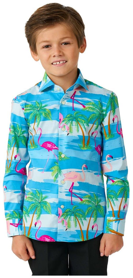 Tropical OppoSuits Boys Flaminguy Long Sleeve Shirt for Parties and Special Occasions