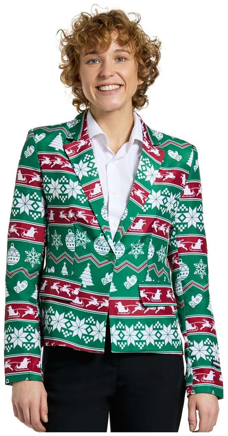Stylish Suitmeister Women's Christmas Green Nordic Blazer for Holiday Parties and Festive Events