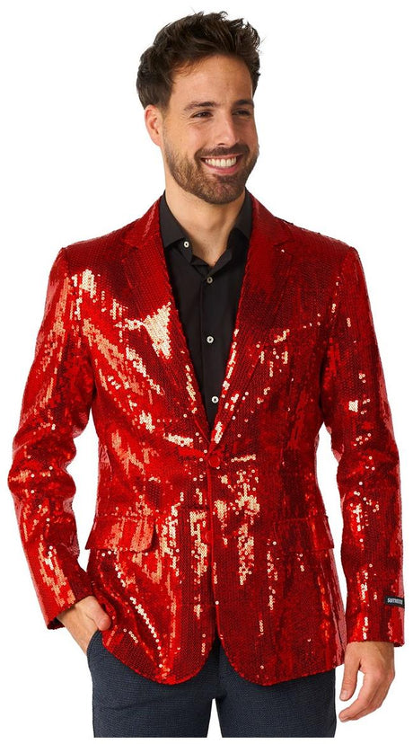 Stunning Suitmeister Men's Red Sequins Blazer for Parties Events and Special Celebrations