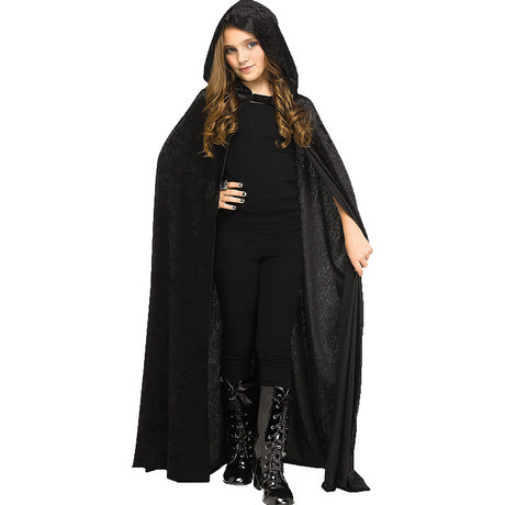 Kid's Black Hooded Velour Cape for DIY Costumes Halloween and Themed Dress Up Events