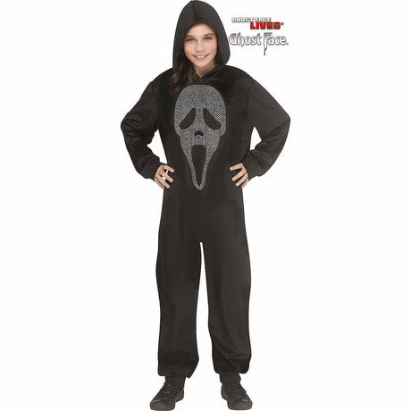 Kids Ghost Face E-Z Bling Hooded Jumpsuit Costume for Halloween Parties Dress Up and Themed Events