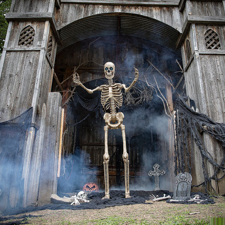 8-Foot Towering Skeleton with Projection Eye for Halloween Decor and Scary Themed Parties