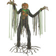 This gruesome scarecrow indoor Halloween decor lights up as he writhes, uttering five chilling sayings. Choose from the Steady-On Infra-Red Sensor or Step Here activation options. Simple assembly required. Material: Metal and fabric. Size: 7 ft.