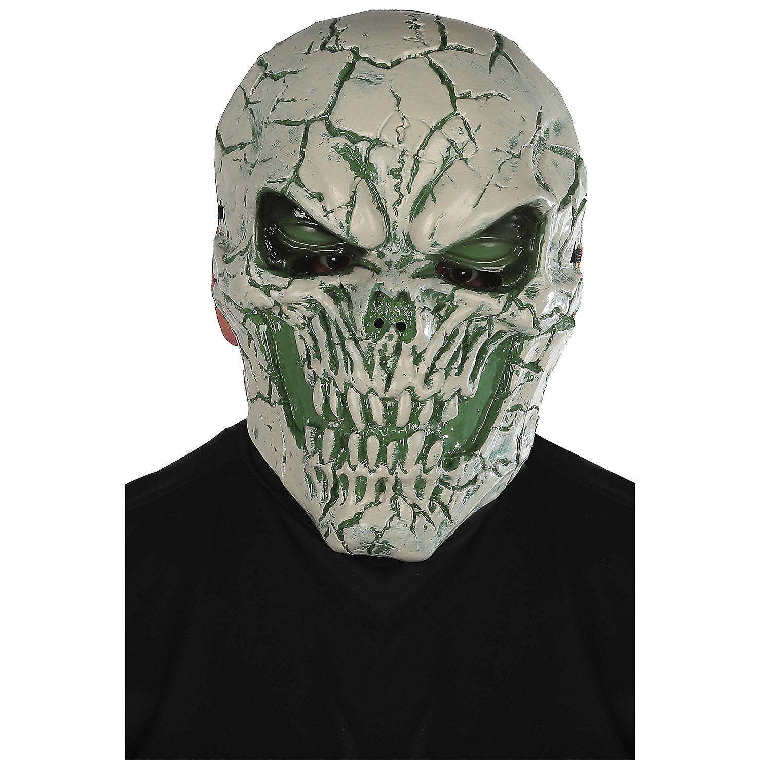 Poison Lightup Adult Mask - Death himself would share a skeleton grin! Light-up face mask is a rotted cracked skull mask that will glow a disgusting green when activated.